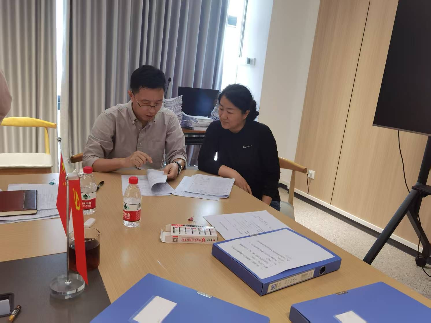 2024年3月26日晚上19:30-22:00,在学院507会议室,学院教学督导开展第二次检查活动。本次检查活动不仅是教学督导对教务办收集的已修改过的文件进行了全面复查,还邀请任课教师来参加,现场听取督导对教学材料的复查发现的问题和修改建议,更有利于老师们理解和修正。